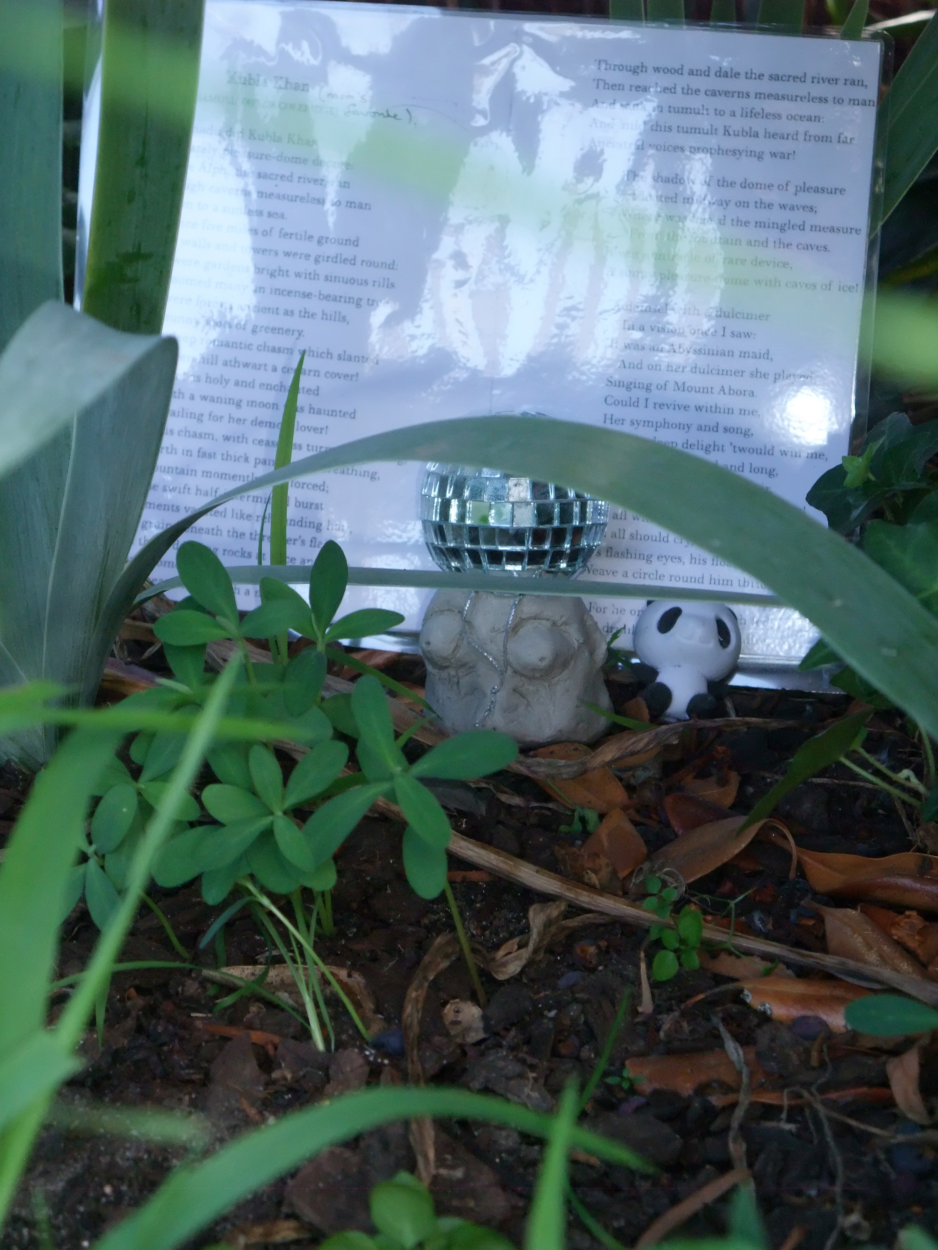 This sculpture was left in the flower beds outside Ruyton in Coleridge St, Kew. The poem is Khubla Khan by Samuel Taylor Coleridge. A fitting poem for a girls school I thought. Lots of erotic suggestions and fantasies.