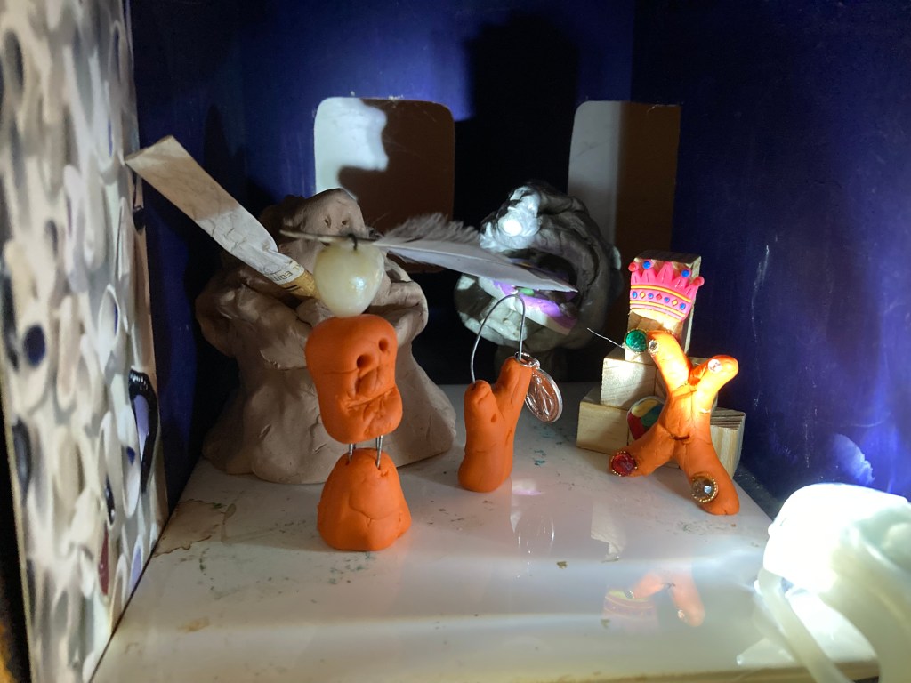 The family of three, Two Heads, Star and Rats. All going their separate ways. Rats ends up in Paris hanging with KAWS. Star goes to Kalabaka, Meteora in Greece after many years. As for Two Heads, he can’t decide where he wants to be! So he came home from the High Plains and awaited news from his more adventurous siblings. When two Heads isn’t arguing with himself, he realises that love carries across the waves and into all dimensions. he sends a loving kiss to their parents floating around as atoms in the cosmos. And so in some ways although they were all alone in another way they weren’t.